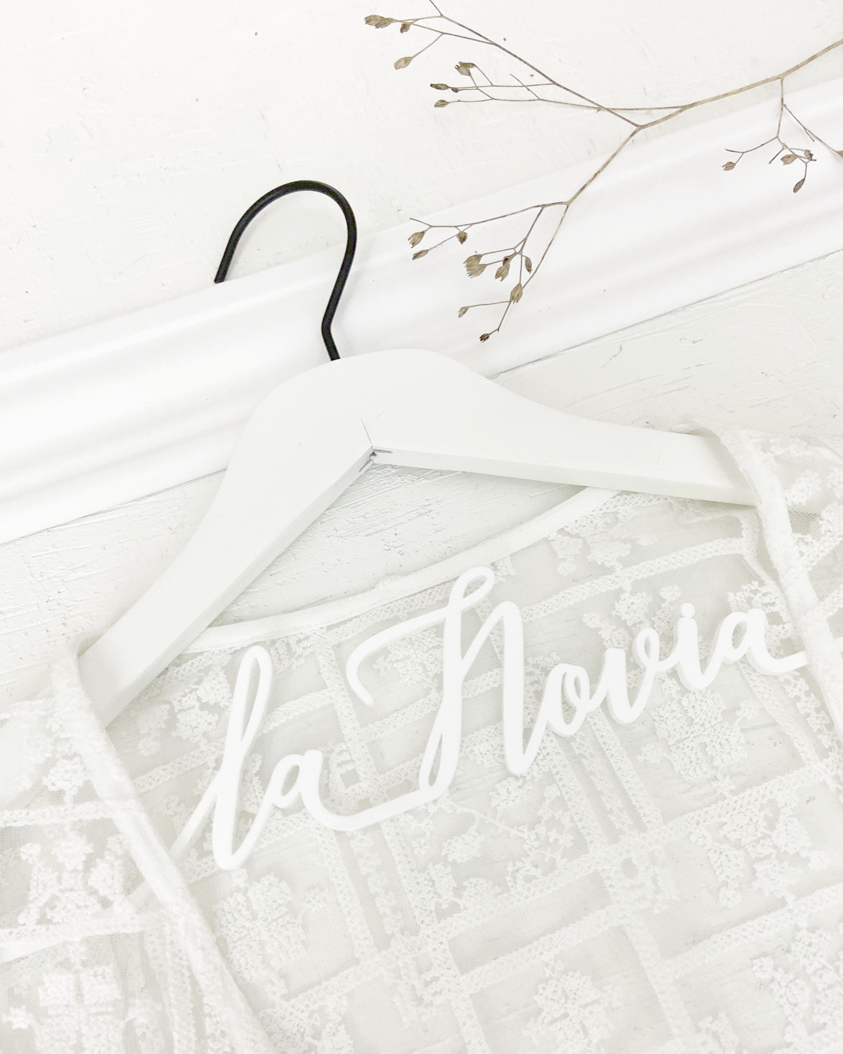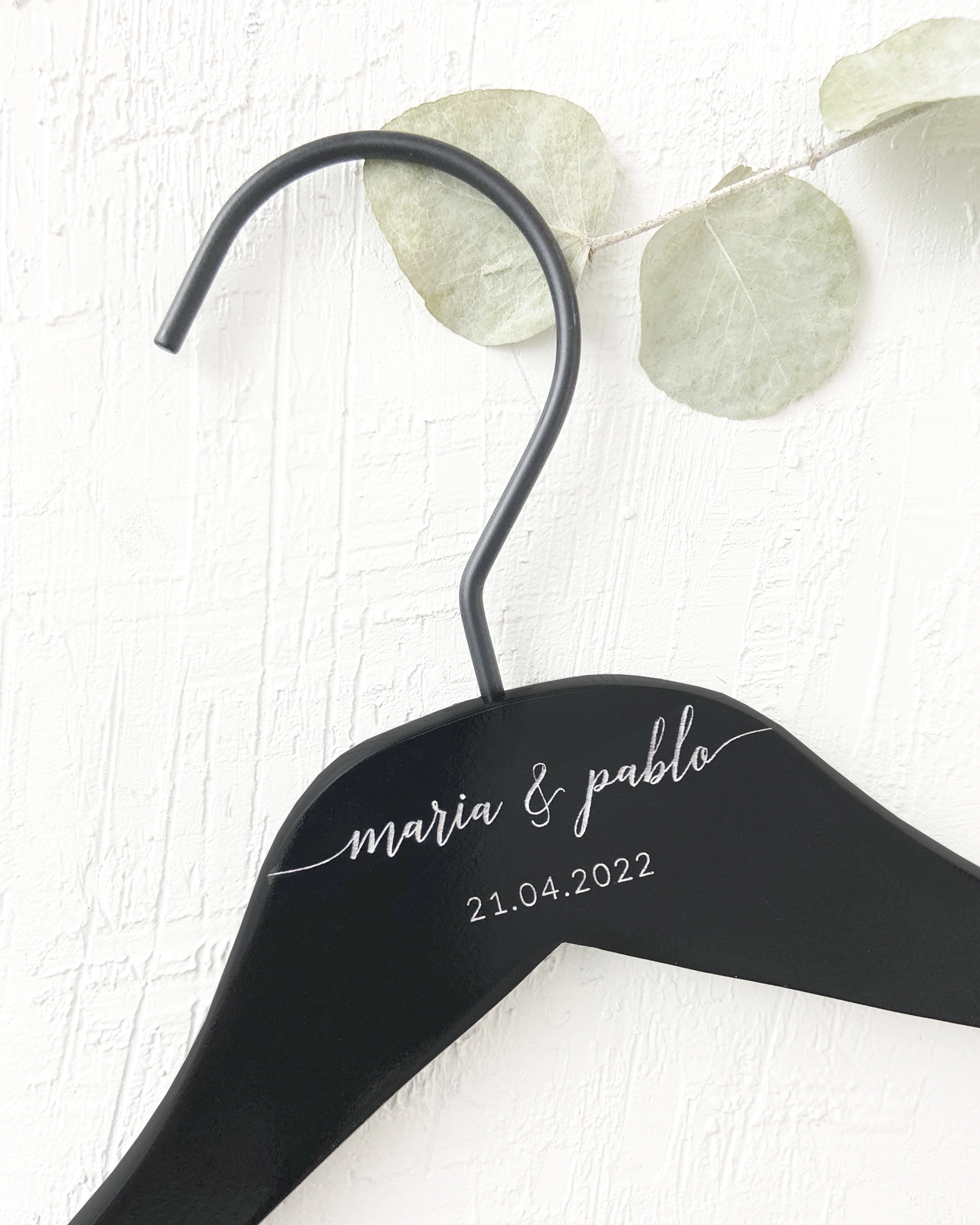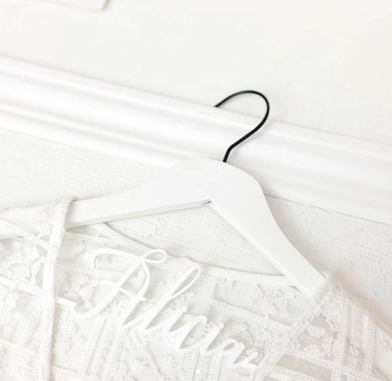 Elige una de nuestras perchas blancas, perchas negras o nuestras perchas de madera, todas ellas completamente personalizables, para conseguir un añadido en tu gran día y que realmente se note que no hay nada que se te haya escapado.