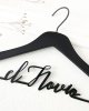 Por otro lado, aunque personalmente nos encanta la imagen del traje de novia colgado en una percha personalizada, ¿qué me dices del traje del novio? No se quedará atrás con una percha negra para novios, tan elegante como bonita.